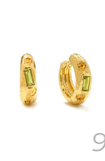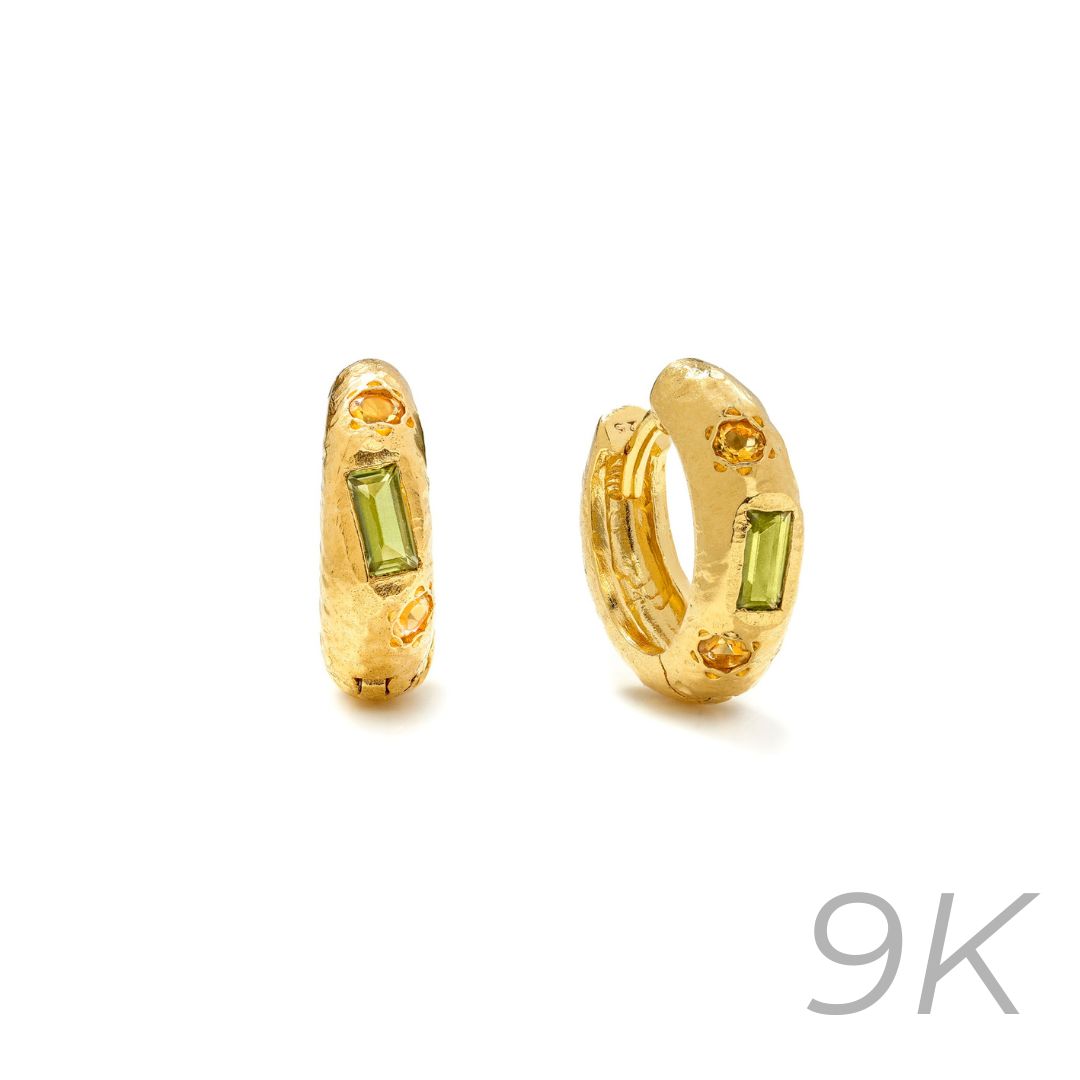 A stunning pair of organic shaped mini hoops with peridot and citrine jewel embellishing. A staple pair of hoops. Stack them up with our Carmen hoops, cuff and cross stud.