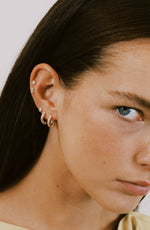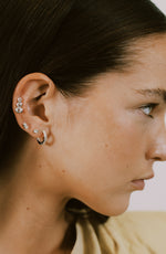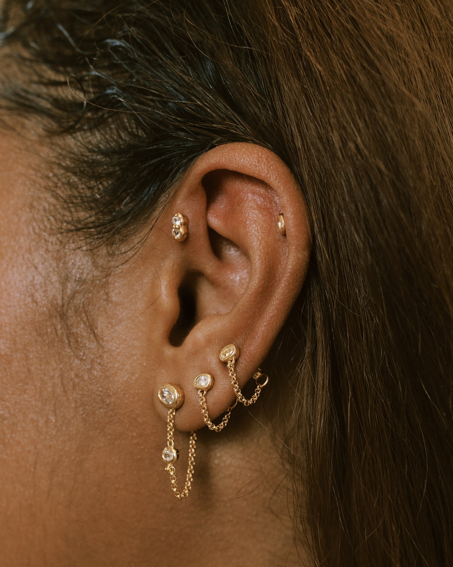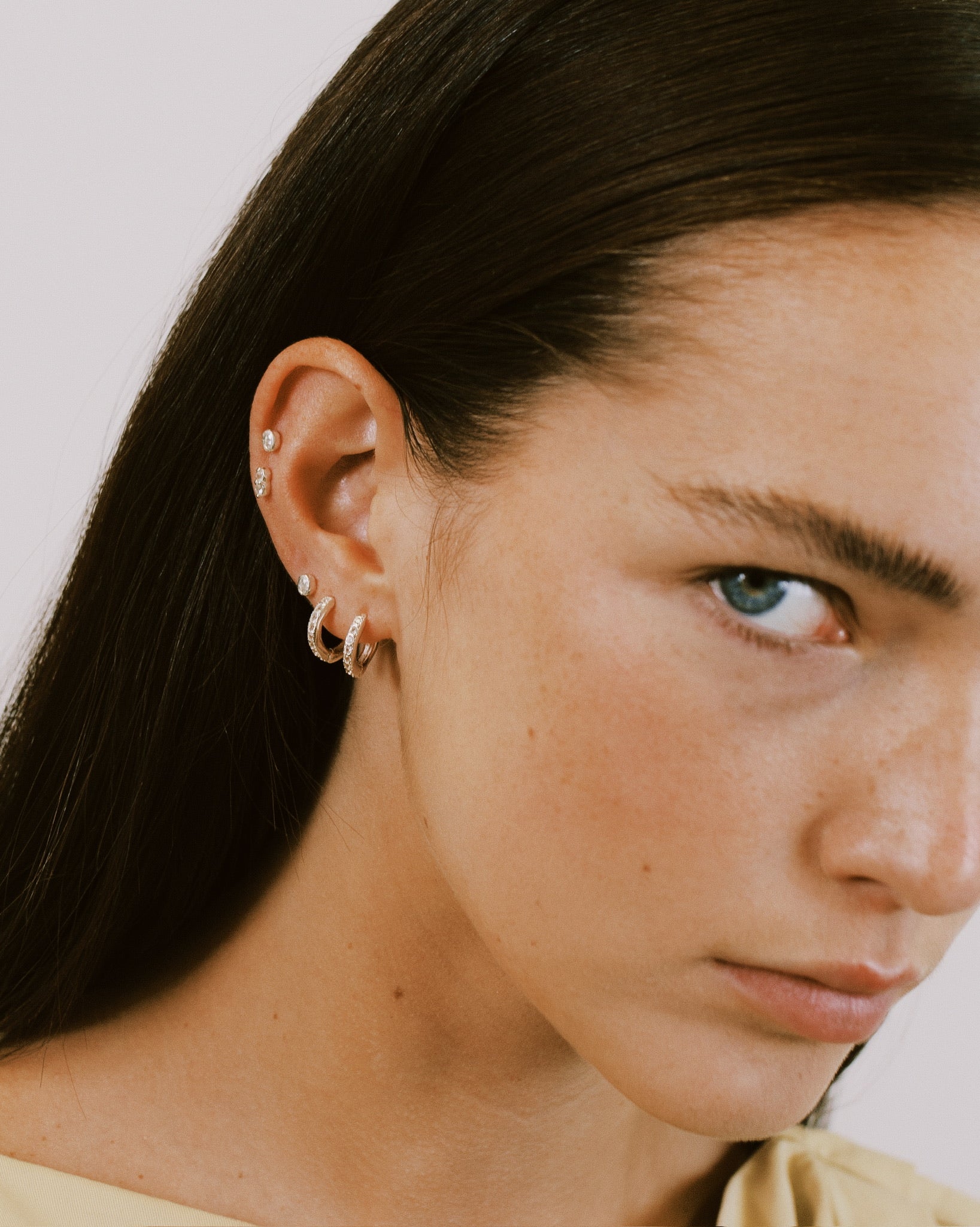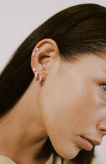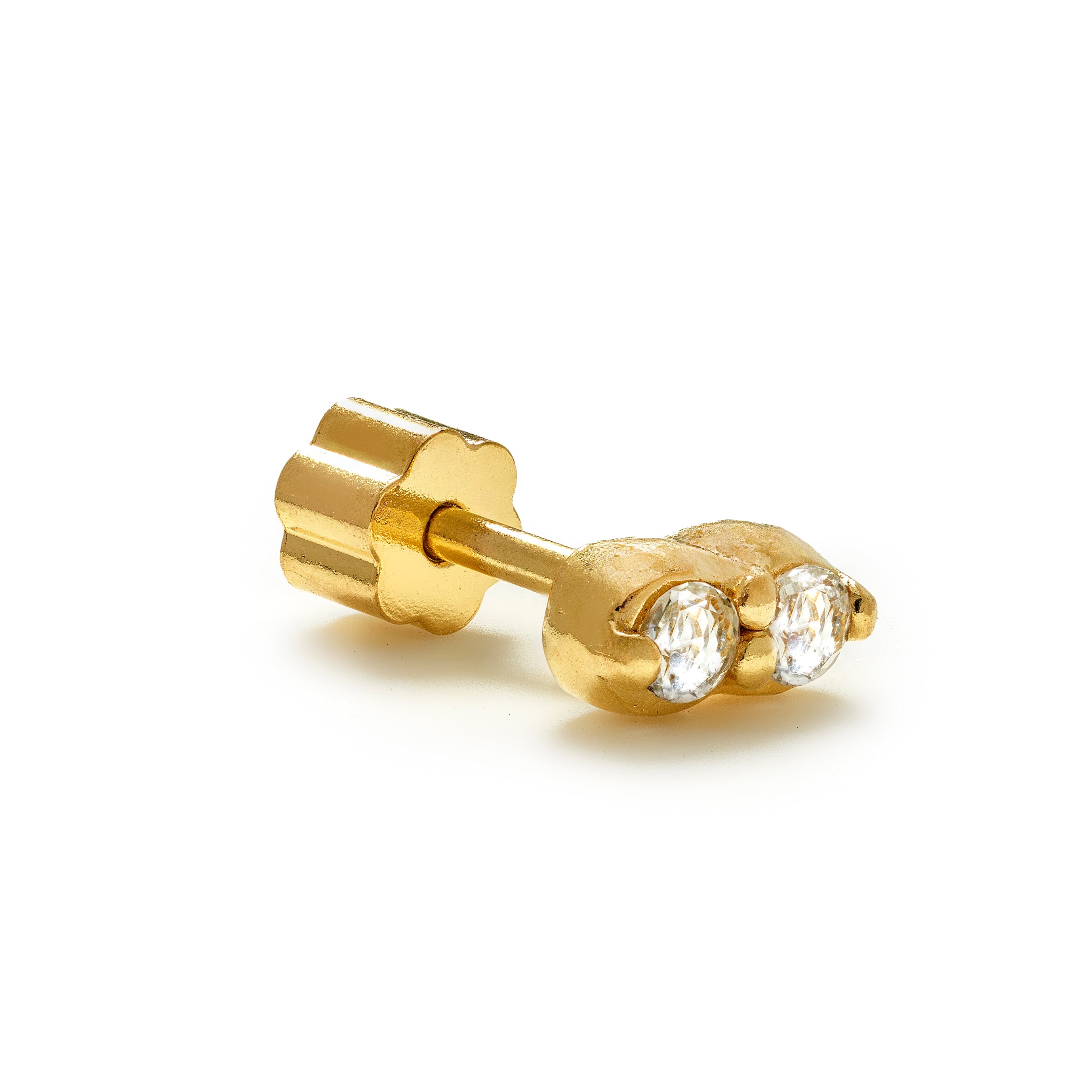 A refined stud earring featuring two tiny white topaz stones. Vayra has a flat back so its super comfy to keep on all the time. Perfect worn on its own or in a stack.