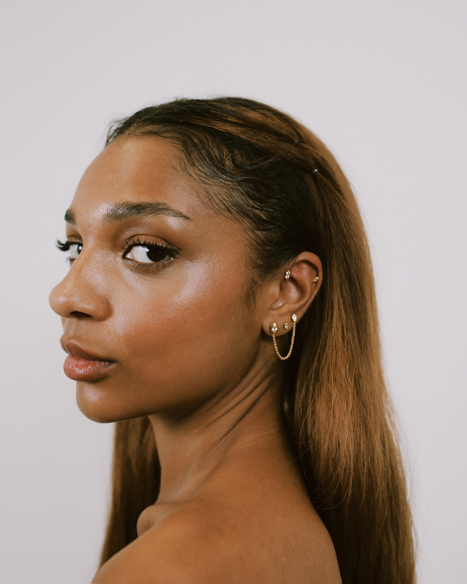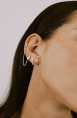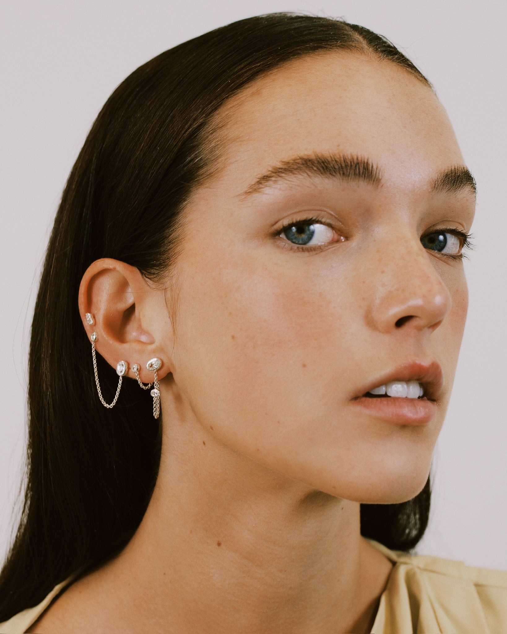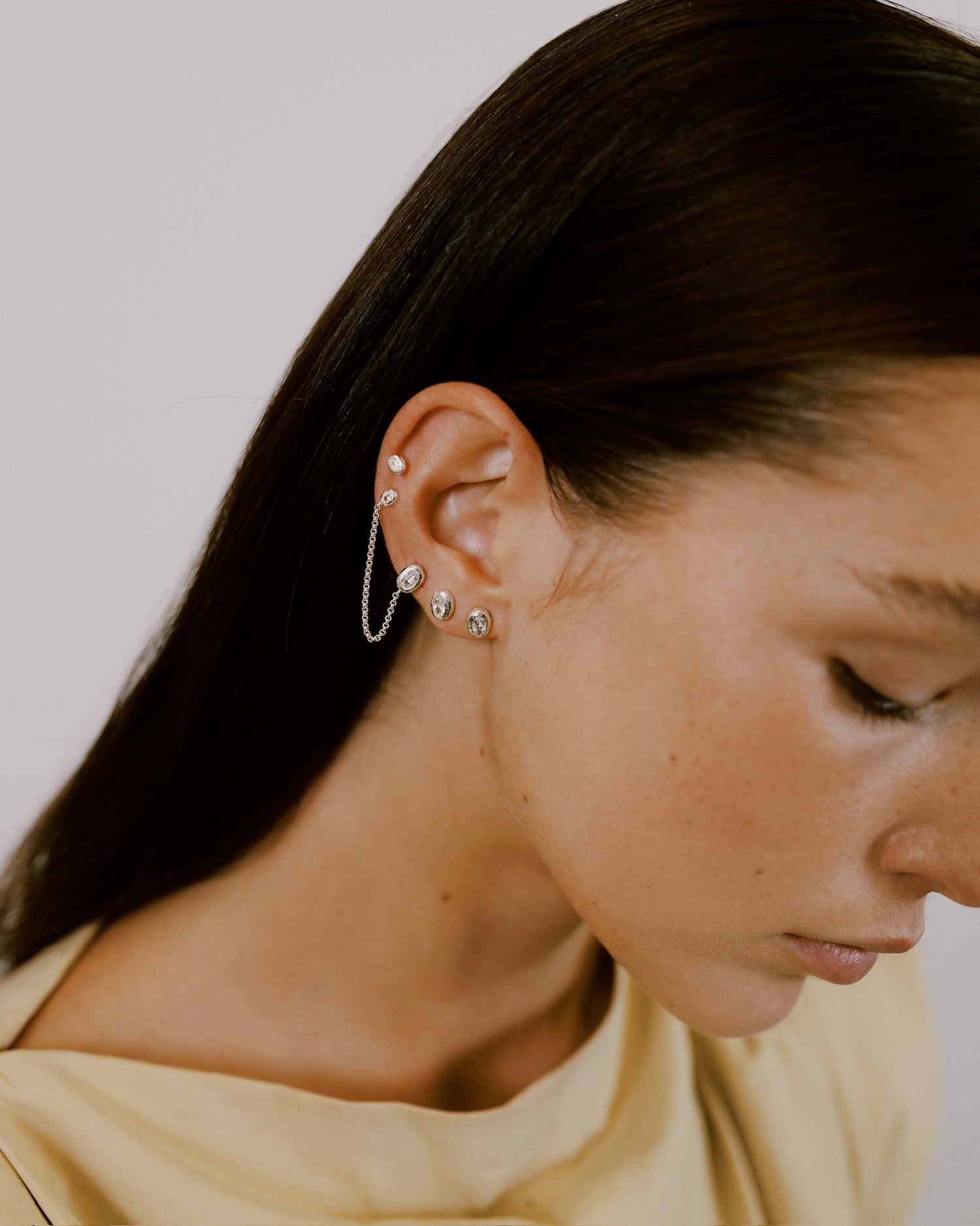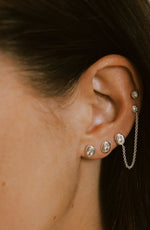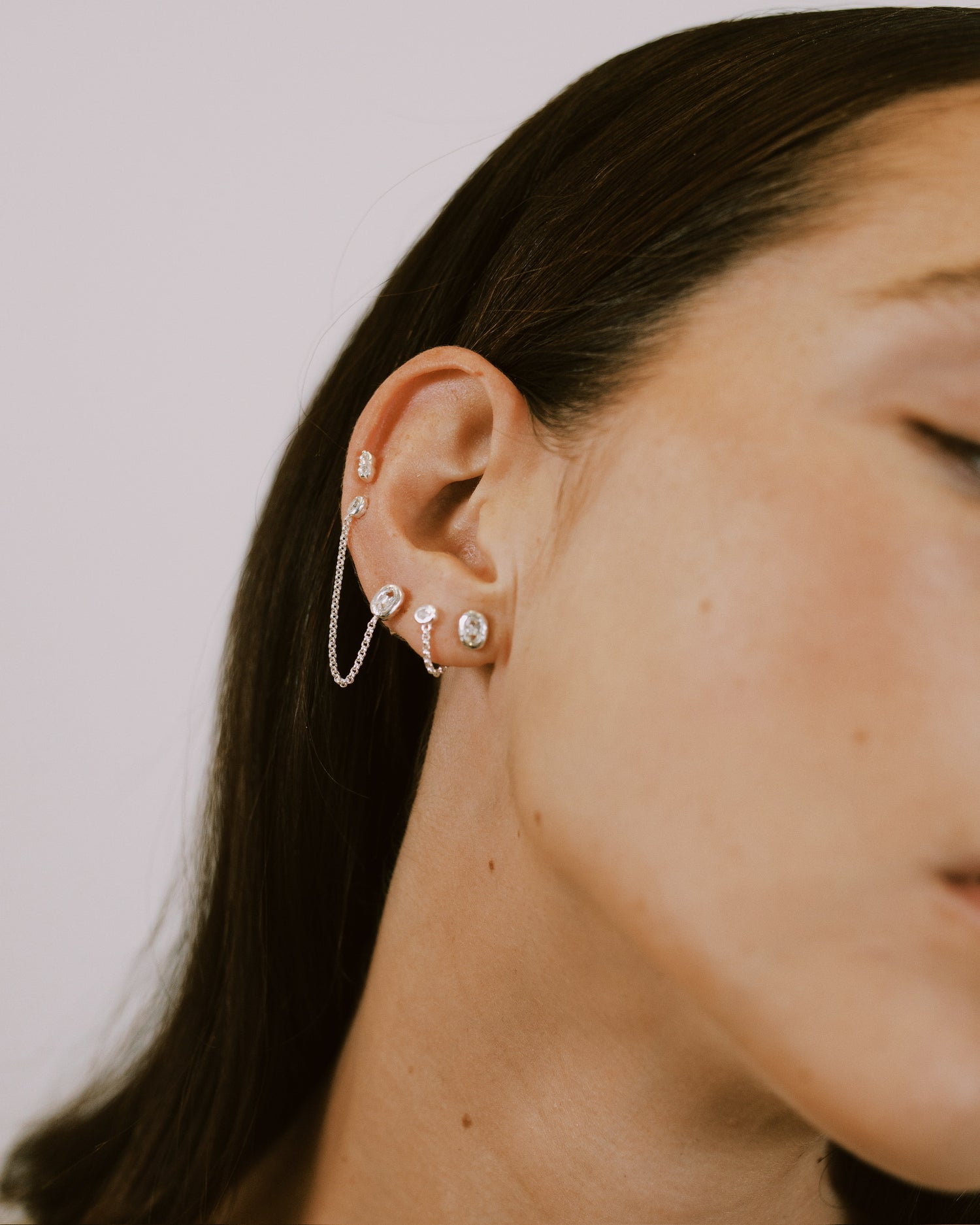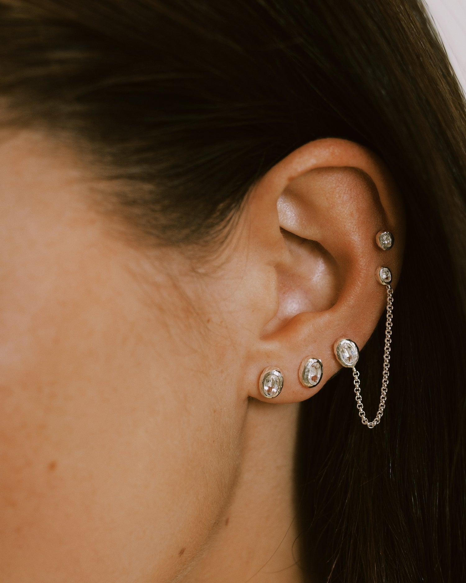 One earring, one stack. Two white topaz stones joined by a chain so you can stack up your ear with just one earring!